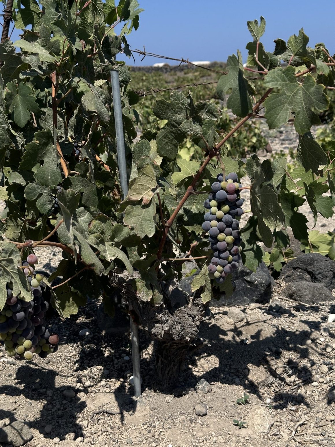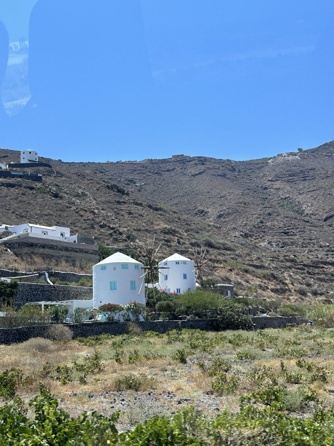 The local wines only enhance this impression. As you travel across the island, you’ll spot numerous “basket houses” woven from branches—this is the Assyrtiko grape vine training system. The vines are shaped this way to protect the clusters from fierce winds and sand whirls, helping the grapes hold onto the vine in extreme conditions and retain moisture.