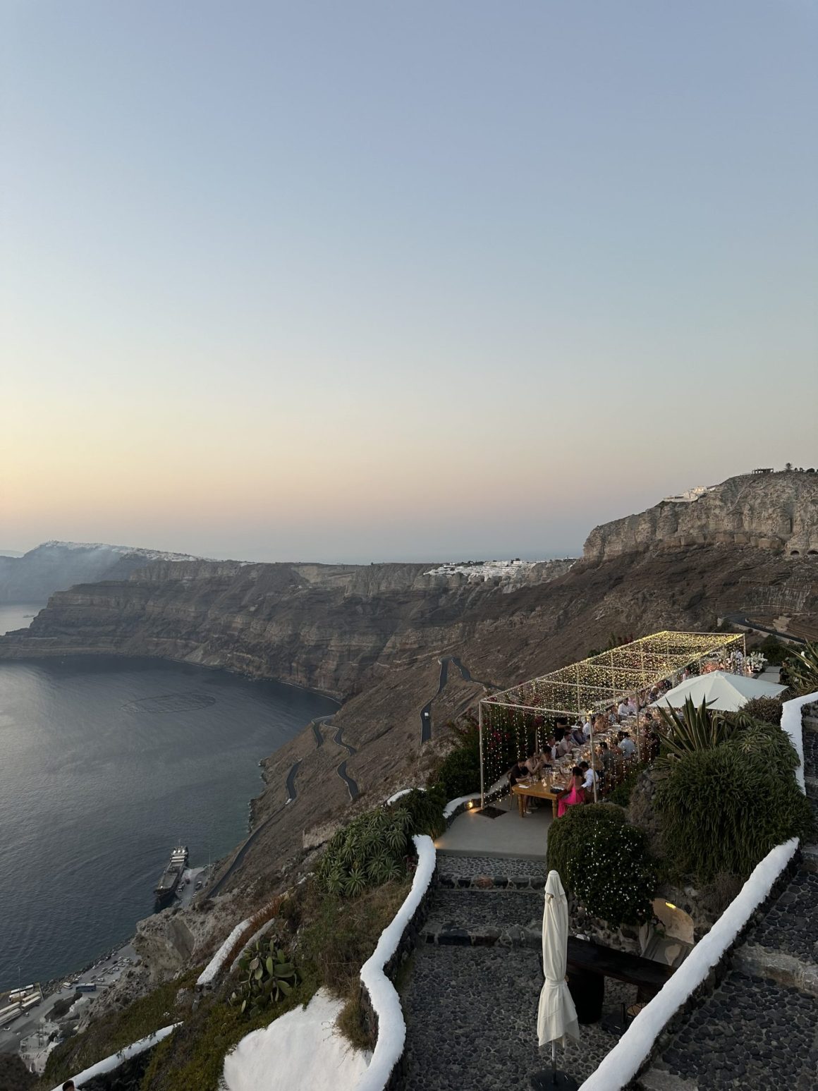 Only neighboring Venetsanos can compete with Santo Wines for spectacular views. This family-owned winery hangs dramatically above Athinios Port and is quite literally built into the cliff. Founded in 1947 and the island’s first industrial winery, it was originally engineered using a gravity flow principle: the building was constructed from top to bottom, allowing the wine to move through the levels without using pumps—critical in an era when access to energy was limited. Today, the historic spaces have been restored, and tastings are held on the terrace overlooking the caldera.