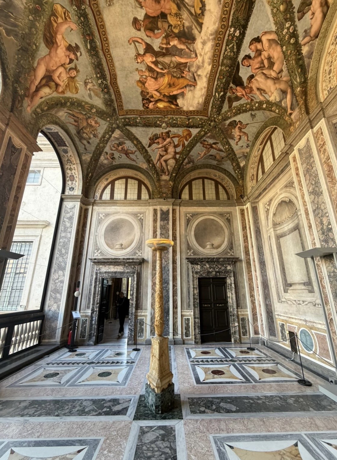 Прямо рядом с Палаццо Корсини — прекрасная Вилла Фарнезина, полностью расписанная Рафаэлем. Эти фрески настолько божественны, величественны и виртуозны, что прогулка по вилле и её саду — это большое удовольствие. Вилла стоит на берегу Тибра.